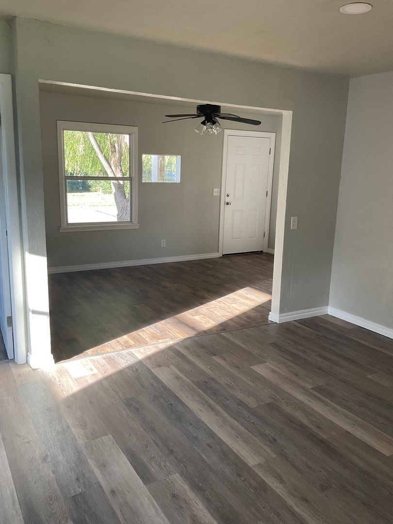 Three or Four bedroom home. Laminate and tile flooring throughout. Storage building with fenced in backyard. Freshly painted throughout